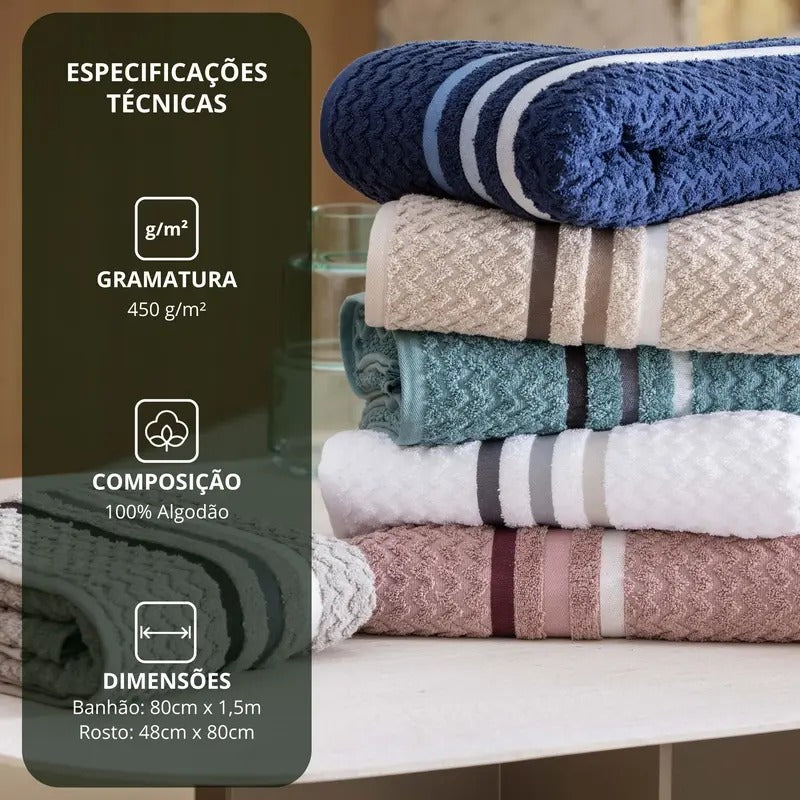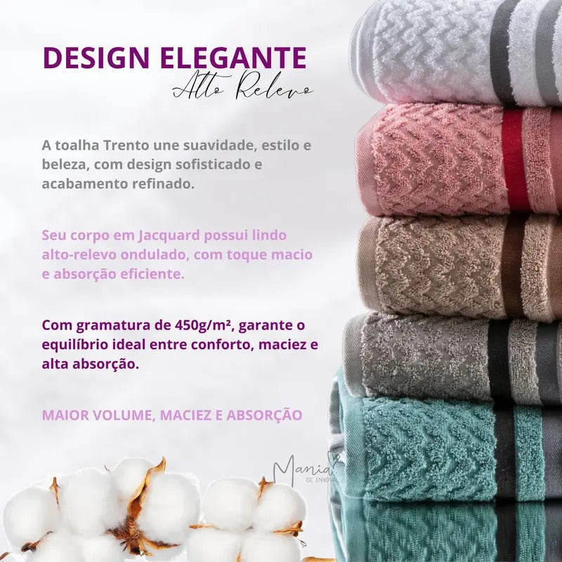 Kit Jogo de Toalhas Banho Gigante 4 Peças Fio Penteado Jacquard 450g/m² 100% Algodão Trento Cortex – Maciez e Alta Absorção (ÚLTIMAS UNIDADES) + BRINDE EXCLUSIVO