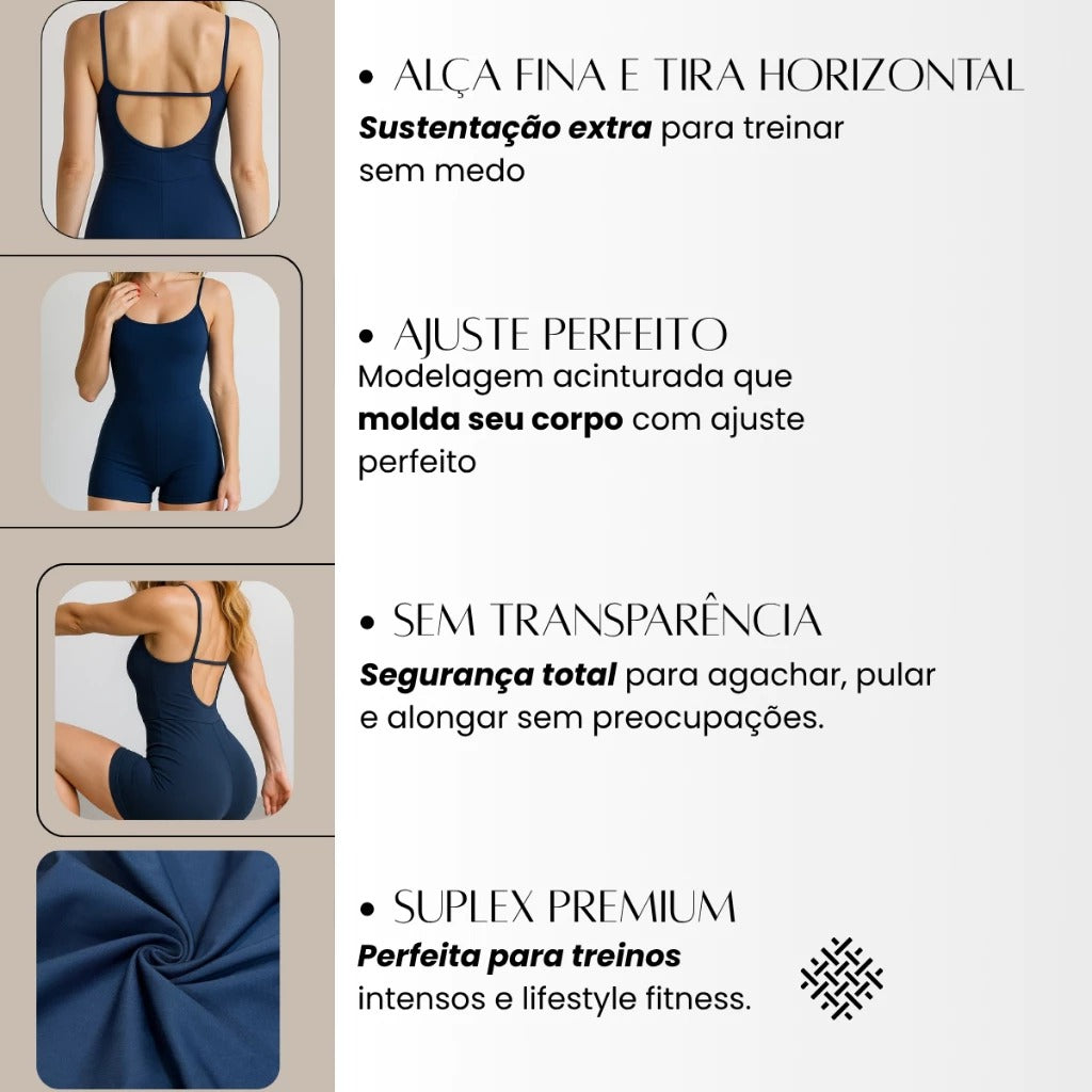 O queridinho das mulheres que amam treinar com conforto, praticidade e muito estilo! 😍 Nosso Macaquinho Fitness com alças finas e costas abertas valoriza a silhueta, garante sustentação e traz um visual moderno e sofisticado. Feito em suplex premium forrado, proporciona zero transparência e ajuste perfeito ao corpo.