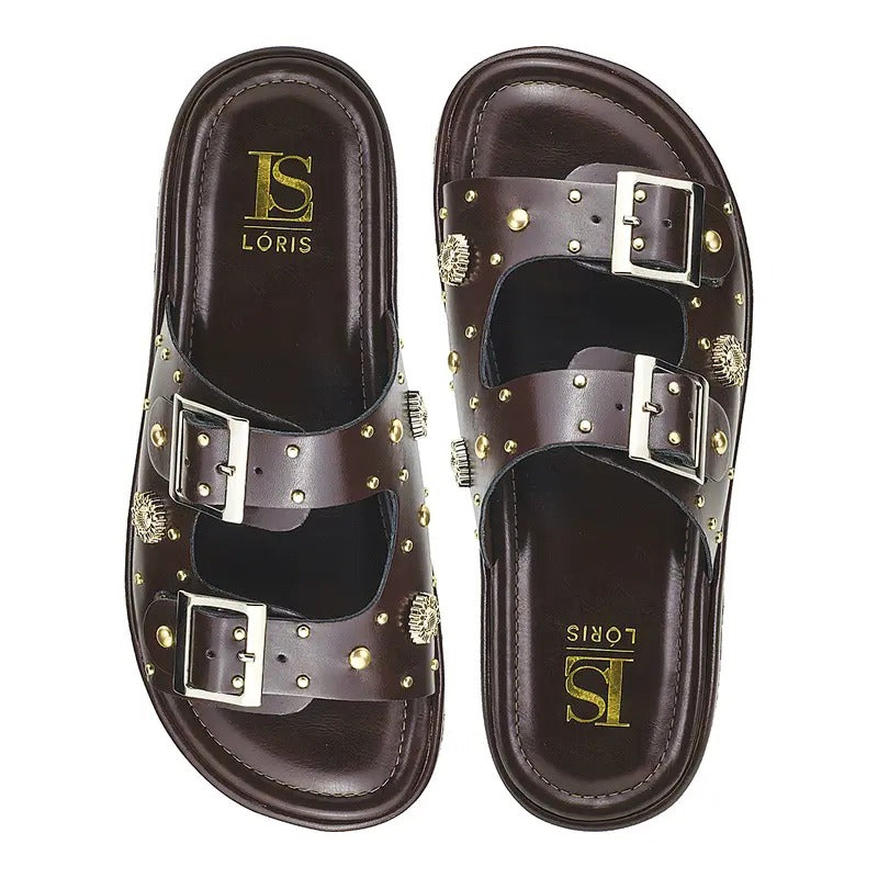 Seu design moderno é valorizado por tachinhas e aplicações douradas, que trazem um toque sofisticado e fashion ao visual. A palmilha macia proporciona conforto prolongado, enquanto o solado emborrachado antiderrapante garante mais segurança e estabilidade ao caminhar.