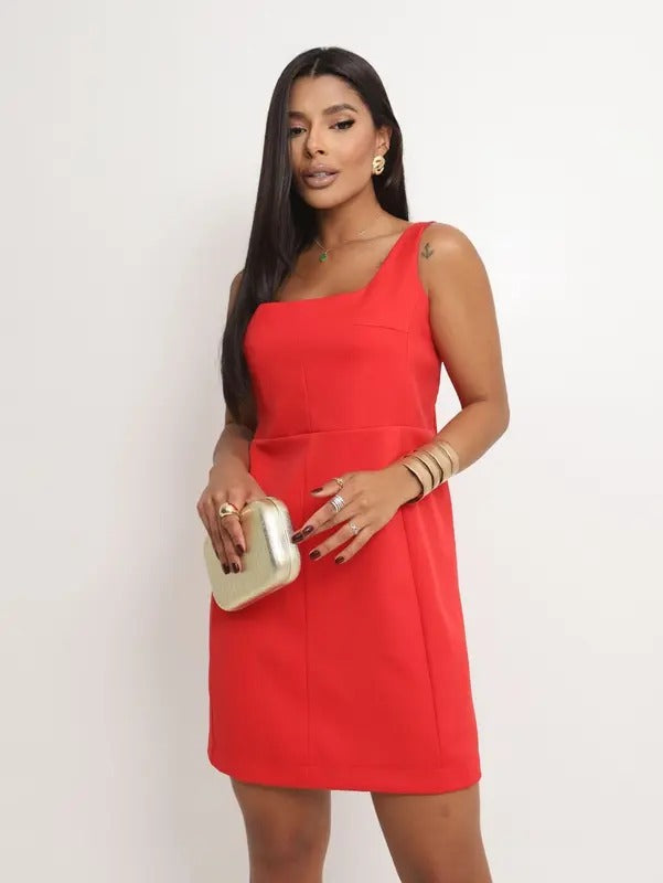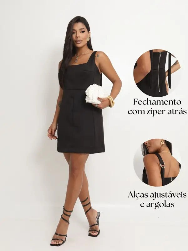 Vestido Fênix – Curto em Alfaiataria com Alças Reguláveis e Zíper